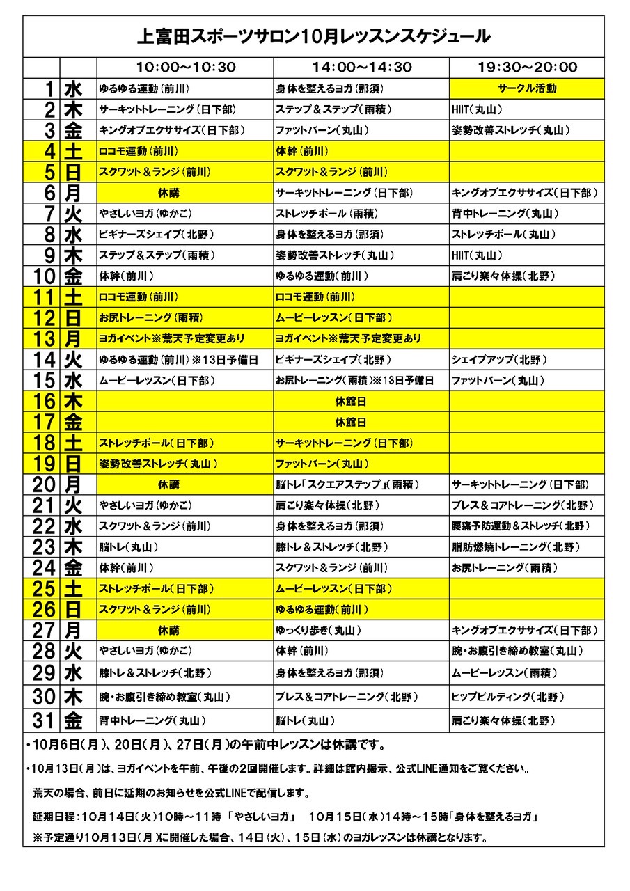 ・ストレッチ ・筋力トレーニング ・ウォーキング ・脂肪燃焼 ・肩こり、腰痛の緩和 朝とお昼のレッスンは、シニアの方が多く参加されています! 夜のレッスンは若年層が多く内容も相対的にハードな内容となっています。